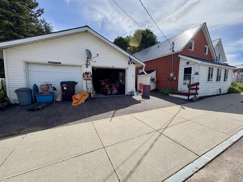 Conveniently located steps from Chateaugay School this home offers a spacious private yard and large finished bar shed in the backyard, great for entertaining or relaxing outdoors. There is a large primary bedroom with a large closet. This home offers two bedrooms and two bathrooms with an on demand propane hot water heating system. There is also a two car garage.