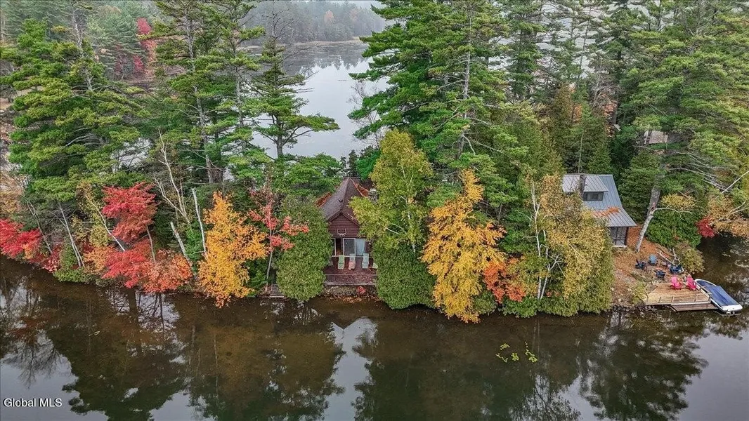 Welcome to one of the most breathtaking properties on Loon Lake - a true Adirondack retreat where serenity, beauty, and nature come together in perfect harmony. Nestled on a private peninsula surrounded on three sides by sparkling water, this stunning log-style home boasts an incredible **412 feet of direct lakefront** and some of the **best panoramic views on all of Loon Lake**. As you walk down the short wooded pathway, anticipation builds until you arrive at your dream destination - a warm, inviting lakefront escape featuring a **double-sided stone fireplace** that anchors the heart of the home. Enjoy the glow of the fire from both the cozy living area and the dining room, where windows frame endless lake and mountain vistas. The open-concept layout, exposed beams, and natural wood finishes bring a rustic elegance that perfectly complements the peaceful Adirondack setting. This 3-bedroom, 2-bath home offers year-round comfort with full heating, and the **loft attic** provides extra space for guests, a reading nook, or a quiet office overlooking the lake. Step outside onto your **expansive waterfront deck** - perfect for morning coffee, evening sunsets, or simply listening to the water lap at the shore. Your **private dock** awaits, ready for days spent boating, swimming, or just soaking in the simple joys of lake life. Adding even more value and opportunity, a **separate 3-car garage** sits on over **5 additional acres** with approximately **800 feet of its own lake frontage** - ideal for storing boats, snowmobiles, or creating another lakeside retreat. (142 E Shore Dr 69.14-1-9) Whether you're gathering by the fire on a snowy night or hosting summer barbecues on the deck, this one-of-a-kind property offers everything the Adirondacks are meant to be - peaceful, inspiring, and unforgettable. This is more than a home. It's a lifestyle - where every sunrise and sunset reminds you that you've found your piece of paradise on Loon Lake.