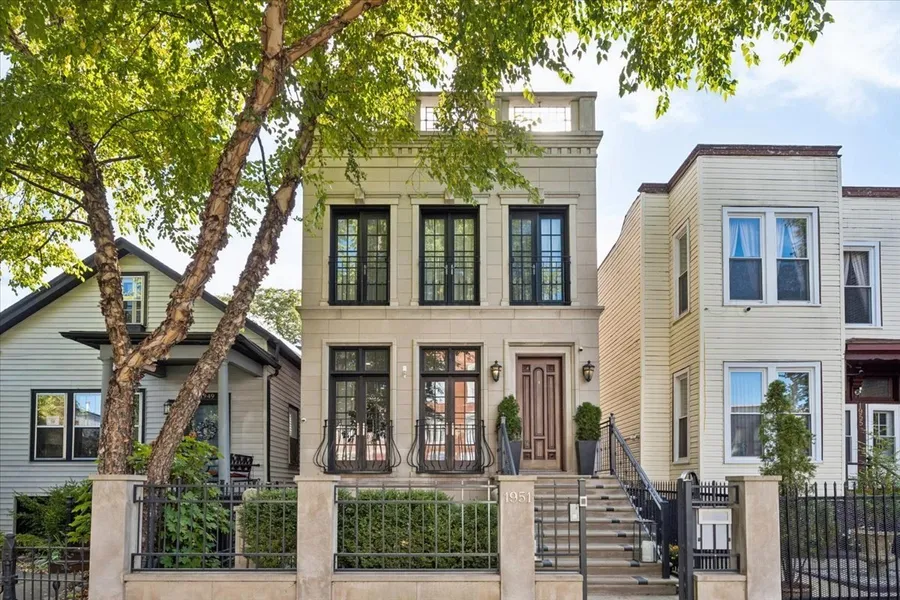 Exquisite recently remodeled all-brick SFH in Ukrainian Village/West Town on a quiet one-way street! The large home features 5 bedrooms + 3.1 baths, 4,500sf of living space, with 5 separate outdoor spaces. 1st Floor features a sun-filled open living room with a wood-burning fireplace that opens to a large, formal dining room, updated powder room and the gourmet chef's eat-in kitchen with high-end SS appliances (Thermador, Gaggenau & Meile), built-in espresso & coffee maker, new quartz countertops, and subway tile backsplash with custom cabinetry, opens to a large, South-facing Family room w/ built-ins that has glass French-doors that open to a large patio and roof-top deck over the garaage - perfect for entertaining! The 2nd level features a huge primary bedroom with a walk-in closet and balcony, 2nd laundry room 2 additional bedrooms (very large front bedroom), 2 updated baths, includin...