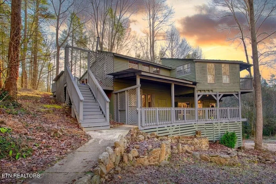 Opportunity to own 2 income producing homes overlooking a creek on 7.76 acres with a shed, a barn, and your own mountain that has multiple terraces cut in with views of the Smokies. Since 2022 these cabins have been upgraded with new electrical panels, new HVACs and 'hard' duct work, PEX plumbing, new hot tubs, new hot water heaters, new appliances, new pressure tank in well house, and a zip-line! These income producing cabins are currently listed on AirBnb, VRBO, and a private site with great reviews. The larger cabin has 3-4 bedrooms, 2 bathrooms, and sleeps 10. The smaller cabin has 2 bedrooms, 1 bathroom, and sleeps 4. Originally owned and built by a local Gatlinburg artist, enjoy the ambiance of his custom woodwork and unique artistry with the comfort of updated amenities. The cabins are nestled in an old moonshine holler in Cosby, TN. Just 7 miles to the nearest entrance to the National Park, about 12 miles from rafting on the Pigeon River, 18 miles from Gatlinburg, and 23 miles from Pigeon Forge. But why go anywhere... you have trails on the property with a beautiful view of the smokies at the top of the mountain, 2 hot tubs for star gazing at night, and a fire pit at each home for roasting marshmallows. Come view this property and see why so many love visiting it!