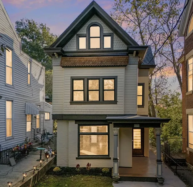 Nestled in Covington's historic Licking Riverside district, 732 Garrard Street blends modern comfort with timeless charm. This four-bedroom, four-bath home offers nearly 2,500 square feet of open, light-filled living. The main level flows seamlessly from the spacious kitchen and dining area to a bright living room ideal for entertaining. Upstairs, the primary suite features a private deck and spa-style bath, while additional bedrooms offer flexibility for guests or office space. Efficiency upgrades include all-new luxury Pella windows, enhanced insulation, split HVAC systems, and a tankless water heater. Outdoor living shines with dual decks, covered parking, and a generous fenced lot-rare for this walkable neighborhood. Moments from MainStrasse, the riverfront, and downtown Cincinnati, this home combines luxury, efficiency, and location in perfect balance.
