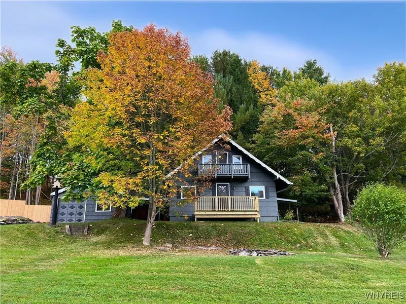 Looking for a wonderful home in the country? Yet only 10 mins to East Aurora and only 8 mins to Jamison Rd exit of the 400? You've just found it! Beautifully updated home perched on a picturesque lot of over 1 acre with beautiful view. Spacious open floor plan. New Kitchen with butcher block countertops and breakfast bar. New fixtures and lighting. Fridge, micro and stove included. All new flooring throughout - laminate plank on first floor and comfortable wall to wall carpet in the two upstairs bedrooms. One updated bathroom on the first floor. Convenient first floor laundry. New Hot Water Tank. Upper level has balcony off one bedroom to take in the stunning view. Large front deck. side patio. Large outbuilding/barn.