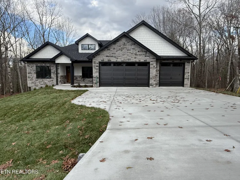 Quality-Built New Construction in Fairfield Glade! Beautifully crafted and thoughtfully designed, this brand-new 3-bedroom, 2-bath home offers 2,240 sq. ft of main-level living plus a 492 sq. ft basement workshop with both a garage door and man door. The exterior features a striking Hardie board and stone design accented by a stunning mahogany craftsman front door. Step inside to find luxury vinyl plank flooring throughout. a spacious formal dining room, and a large living room with a tray ceiling and gas fireplace. The gourmet kitchen showcases white cabinetry, solid-surface countertops, a subway tile backsplash, accent island, curved range hood, stainless-steel appliances, and a large pantry. Enjoy outdoor living on the 17'10 x 9'11 covered deck with a tongue-and-groove ceiling or fire up the grill on the adjoining 13'6 x 9'11 open deck featuring Trex decking and black textured railings. The primary suite includes a walk-in closet and a luxurious en suite bath with a beautiful tile shower, double vanities, and classic white cabinetry. Additional highlights include a three-car garage, concrete driveway, encapsulated crawlspace, and tankless gas water heater. All this in a prime Fairfield Glade location- offering the best in quality, comfort, and craftsmanship. (Buyer to verify all information before making an informed offer.)