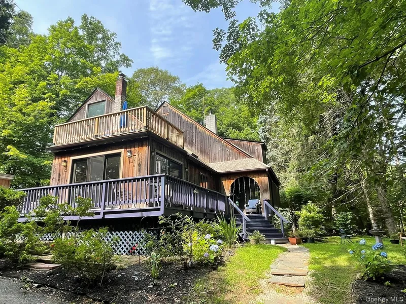 Charming chalet set on a beautifully landscaped acre plus in one of the most sought after areas of Croton-on-Hudson. A private retreat minutes from the Croton Harmon station and fifty minutes into Manhattan. The deck off the master bedroom is nestled in the trees, with a stunning view of the frog pond and surrounding landscape. The Mexican tiled patio room (additional 154 sq ft) offers views of this magical landscape, an entrance into a home with contemporary flair. The formal dining room includes a cedar closet, elegant and functional. Also on the first floor a completely renovated bathroom is tiled and pristine. Completing the first floor is a large, magnificent living room, full of windows, anchored by a new fireplace insert. The new washer/dryer are also closeted on the first floor. Upstairs, the large master suite features a cathedral ceiling, private deck access, and an en suite bathroom with a jacuzzi tub. A bonus: a sauna to relax in for the chillier months. There are two ample additional bedrooms on the second floor. The third-floor loft with skylight and bonus room are ideal for a studio, office, or guest space. Some of the updates include: hardwood floors, ductless a/c heating units, new high efficiency furnace, hot water heater, new insulation and water softener system, new patio doors, and new septic system and well pump. Outside, the property has been extensively landscaped, and a heated detached garage/barn provides a bonus space (additional 336 sq ft) with a range of possibilities-from workshop to home gym or studio. Completely private while offering peace and privacy just minutes from the local train station and charming village shops, this one-of-a-kind home is a rare find for Croton and the lower Hudson. There are no audio recording devices inside this property.