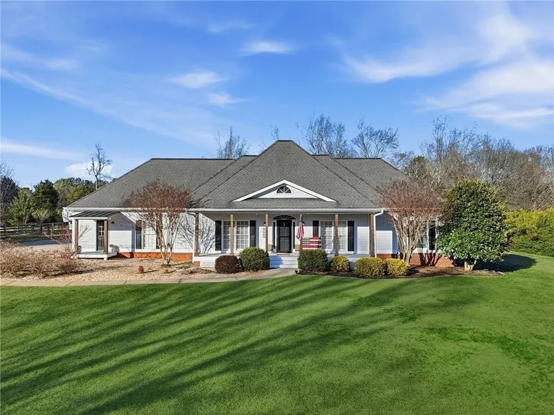 Amazing Ranch home on 2 acres with 2 Primary Suites on Main and a POOL in a private neighborhood, Meadow Creek Farms! 4BR/3BA with Upgrades galore: Granite counters, SS Appliances, custom tile backsplash, beautiful walk-in pantry, premium wood-look flooring, luxury mineral water gunite pool with Pebbletech. You'll love the vaulted Family Room with fireplace, the formal Dining Room seats 12+ and the screened in porch overlooking the fire pit and pool. Huge Fenced in back yard with out building too. Great location in a quiet neighborhood convenient to schools, shopping and restaurants! Excellent North Forsyth County Schools: North High, North Middle & Coal Mountain Elementary.