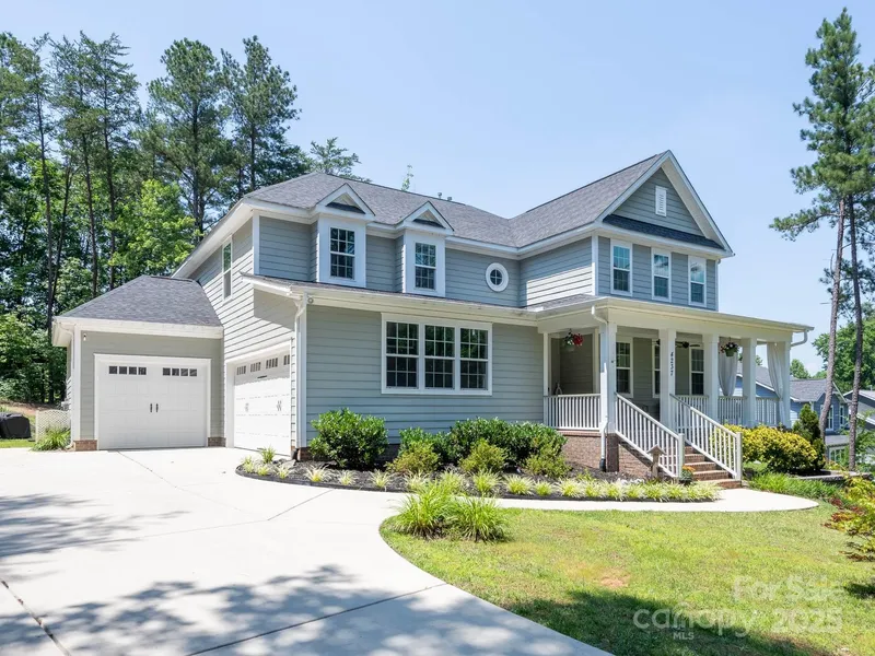 Welcome to this beautifully crafted Craftsman-style home, where a spacious covered front porch invites you into a bright, welcoming foyer and an impressive two-story great room. The open-concept design connects seamlessly to a gourmet kitchen featuring a large center island, sleek granite countertops, and stainless steel appliances-perfect for everyday living and entertaining. The main-level Owner's Suite offers a private retreat with dual walk-in closets and a spa-inspired bath. Upstairs, you'll find a generous loft space, abundant storage, and three additional bedrooms-each with its own walk-in closet. A three-car garage adds convenience and ample room for parking and storage. Nestled in the sought-after Fox Chase community in Denver, NC, this home offers access to top-rated schools and a convenient commute to Charlotte.