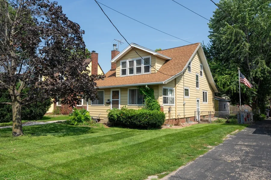 Charming 1.5-story home featuring 3 bedrooms, 2 bath, and a welcoming enclosed front porch. Step inside to a spacious living room with a cozy fireplace, perfect for relaxing or entertaining. The eat-in kitchen offers stainless steel appliances, a gas stove, and ample counter space for everyday cooking. Main-floor laundry adds extra convenience. The lower level has been partially finished to include a 3/4 bath and offers additional living space with a second fireplace?ideal for a family room, home office, or recreation area. Enjoy outdoor living on the large backyard deck, perfect for gatherings or quiet evenings. A generous 26x28 detached garage provides plenty of room for vehicles, storage, or a workshop. Well-maintained and located near schools, shopping, parks, and more, this home blends comfort, updates, and future potential in a great location. A must-see for buyers looking for both character and functionality!