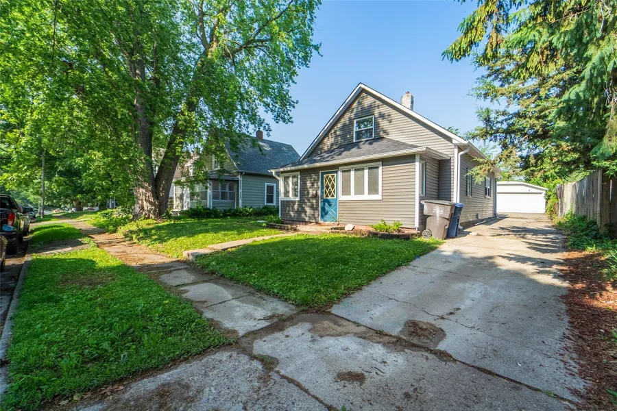 This story and half, 3-bedroom, 2-bathroom home is tucked in a tree-lined neighborhood just a few blocks from Grand View University and Birdland Pool. Walk up the sidewalk and enter the enclosed front porch, perfect for setting up a mudroom or cozy space for your morning coffee. Inside, you will notice fresh paint, new flooring and natural light as you walk through the living space with a great view of the front yard. Pass through to the formal dining space, which could also make a great office. The kitchen is full of character with freshly painted cabinets, new hardware and a new, stainless steel refrigerator. A remodeled full bath, two bedrooms, and a spacious laundry room finish off the main floor. Upstairs, you'll find fresh carpet throughout. A bonus space, perfect for a den, library or nursery, leads to another, large bedroom and full bath to create a master suite or a great option for guests or older children. The backyard has a fence, a two-car garage, and space for pets or entertaining. With a large lot and a convenient location, this property has had plenty of updates and is ready for a new owner.