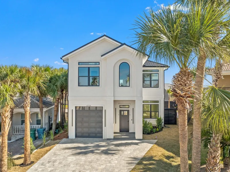 Modern coastal new construction with a private pool in the desirable Terra Cotta Terrace community of Destin. This thoughtfully designed home features an open-concept floor plan with recessed lighting and abundant natural light throughout. The designer kitchen offers custom cabinetry, dramatic stone countertops, a farmhouse sink and stainless steel appliances. Well-appointed bedrooms include custom bunk beds and flexible sleeping spaces ideal for guests or family. Spa-inspired bathrooms feature illuminated mirrors and designer tile. Enjoy seamless indoor-outdoor living with a fully fenced backyard, in-ground pool, and paver deck. The home is complete with a contemporary stair railing, dedicated laundry area, and modern exterior. Convenient to beaches, dining and shopping.