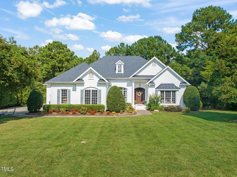Discover refined living in this exquisite all-white brick estate, perfectly positioned in one of the Triangle's most prestigious communities- Colvard Farms. Thoughtfully designed for both comfort and grandeur, this 5-bedroom, 4-bath residence offers predominantly main-level living, seamlessly blending architectural sophistication with everyday ease. Step inside to soaring coffered ceilings, sun-filled interiors, and bespoke designer drapery. The expansive primary suite is a private sanctuary, featuring a spa-inspired bath with luxe finishes and dual walk-in closets. A gracious office-or fifth bedroom-boasts dramatic windows and a private en-suite bath, while two additional main-level bedrooms with new carpeting share a stylish buddy bath. Upstairs, a generously sized guest suite, versatile bonus room, and abundant storage provide endless possibilities. Enjoy tranquil mornings in the ligh...