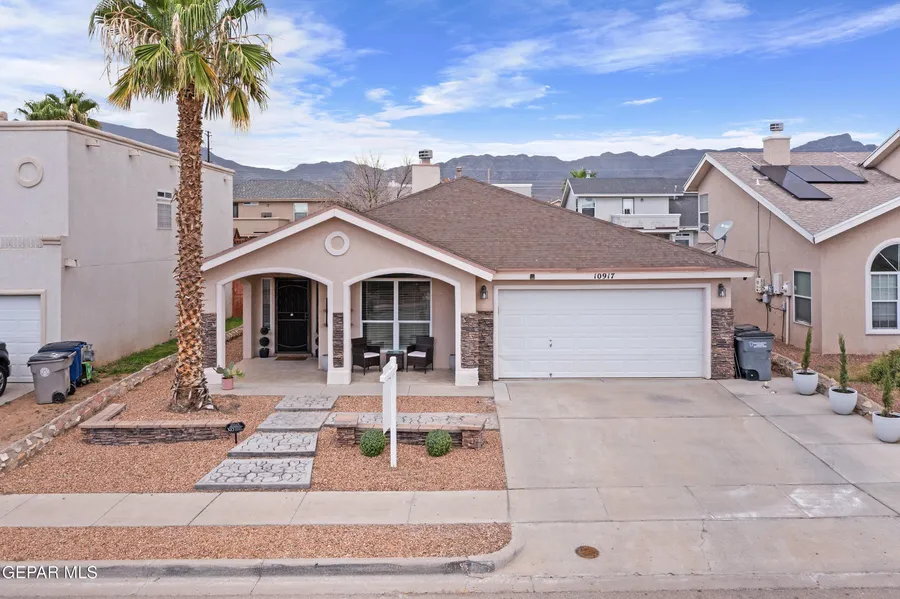 Stylish Comfort Meets Outdoor Fun in Sandstone Ranch Welcome to 10917 Duster Drive, a beautifully updated 4-bedroom, 2-bath home in Northeast El Paso's sought-after Sandstone Ranch community. With 1,832 square feet of living space, this move-in-ready gem offers easy access to mountains, Ft. Bliss, parks, schools, restaurants, & shopping. Step inside to soaring vaulted ceilings that enhance the spacious feel of every room. The kitchen is a standout-featuring sleek quartz countertops, a gas range, & modern finishes perfect for home-cooked meals and entertaining. Recent upgrades include new laminate flooring throughout (no carpet), refreshed bathroom cabinetry, and custom fireplace detailing. Smart switches and exterior cameras add convenience and peace of mind, while the garage offers generous built-in storage. The backyard is ready for year-round enjoyment with a saltwater pool, spa, fire...