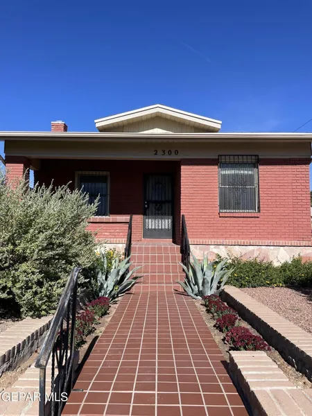 Brick beauty walking distance to UTEP! This two-bedroom, two-bath home PLUS spacious usable finished basement is upgraded, updated and move-in ready. Gorgeous white-washed original hardwood floors. Remodeled kitchen with butcher block countertops. Two en-suite bedrooms perfect for rental/airbnb. Spacious landscaped backyard with view of the Franklin mountains. Super convenient to downtown, to hospitals and schools. Walk to trolley, restaurants and grocery store. Square footage measurement is 1211 for main level and 535 for large finished basement.