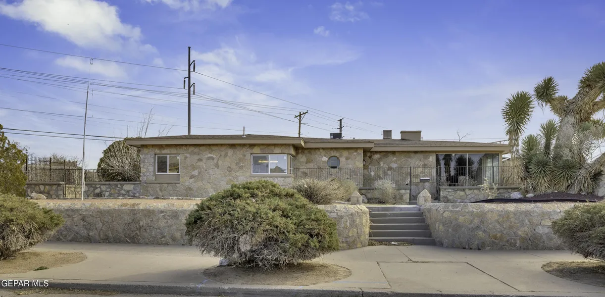 This remarkable unique compound in Central El Paso is one of a kind. Sitting on 3 lots at about 1/2 acre in a highly desirable neighborhood in central El Paso this property has so much to offer. With a main house of almost 3,000 sf this 3 bedroom 2 bathroom single level rock home has been updated with new roof, new windows, new cosmetics, refrigerated air and designer finishes. Behind the main home sits a detached garage with a 3/4 bathroom and functional workspace. Above the garage sits almost 600 sf of apartment space with a kitchennette and full bath. Whether its for investment, mother in law, college child, the sky is the limit with this second usable space. This home has 3 side exterior separate yards, no backyard neighbor and then some, with a gorgeous view of the mountains. Come see it to believe it.