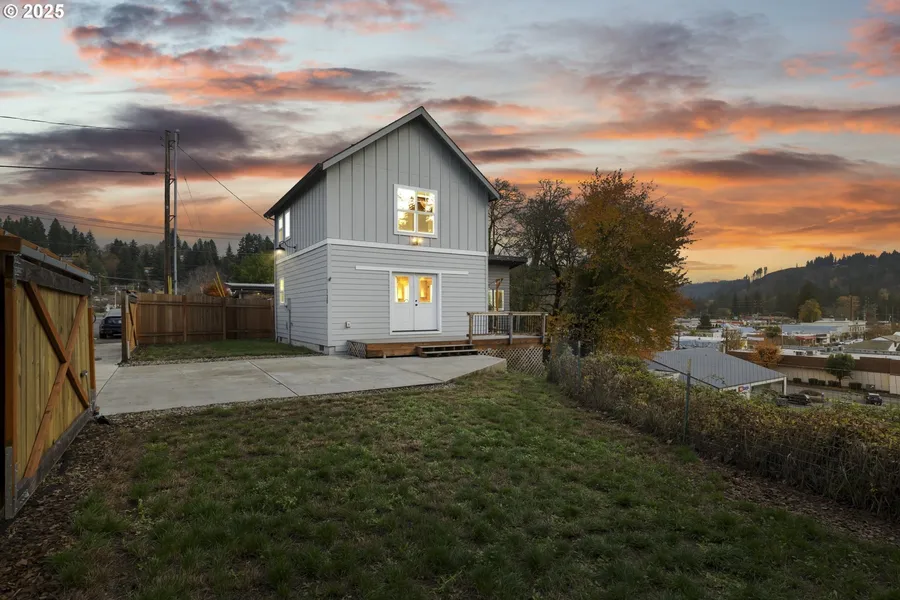Built in 2022, this 2-bedroom, 1.5-bath home offers modern comfort with a mountain-cabin feel and beautiful city views. The main floor features an open layout with vinyl tile flooring, an electric fireplace, and kitchen with stainless steel appliances and quartz counters. Upstairs, vaulted ceilings elevate the bedrooms, while mini splits and an electric tankless water heater provide efficient, year-round comfort. Enjoy outdoor activities on a large Trex deck overlooking the town of Estacada. With modern finishes, serene surroundings, and thoughtfully designed spaces, this home offers a stylish, compact retreat in a peaceful, convenient setting.