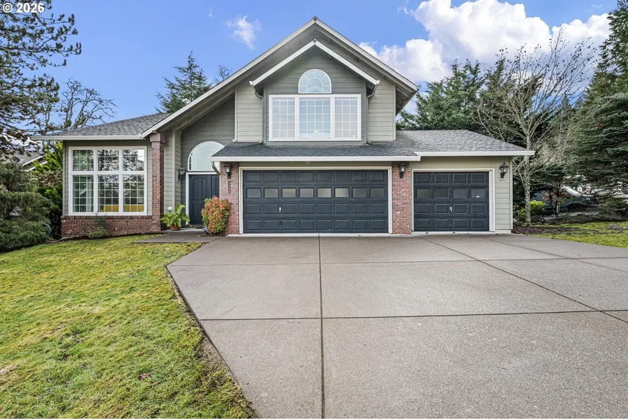 Welcome to this luxurious opportunity in desirable SW Eugene - a beautifully updated, move-in ready home tucked into a quiet cul-de-sac with a level yard and expansive decking for seamless indoor-outdoor living. The light-filled vaulted formal living and dining rooms are highlighted by beautiful hardwood flooring, while the well-appointed kitchen with bar seating opens to the family room with a slider to the back deck, perfect for entertaining. A sought-after bedroom and full bath on the main level offer ideal flexibility for guests or multi-generational living. Upstairs, the vaulted primary suite provides a private retreat, complemented by two additional bedrooms and a spacious bonus room with skylight-ideal for dual living, media space, office, or playroom. Recent updates include refrigerator (2023), HVAC (2023), water heater (2022), dishwasher (2021), deck (2021), bathroom remodel (2021), and flooring (2022) to provide peace of mind for years to come. Complete with a 3-car garage and well-appointed, luxurious finishes throughout, this home offers comfort, style, and thoughtful improvements in a highly desirable location. Enjoy the surrounding wildlife, including roaming deer and turkey. Nestled amongst the trees... call today for your private showing! OPEN HOUSE SATURDAY 12-2!
