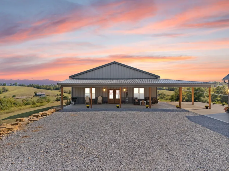 Experience and enjoy the ideal mix of comfort, style, and country charm in this spacious 3-bedroom, 2-bath, 2,400 sq ft barndominium. Situated on 14.035 acres atop the breathtaking Bluegrass Hills of Kentucky. With wide open views, abundant wildlife, and a versatile layout, this property is ideal for a homestead, weekend retreat, or full-time country living. This country home features energy-efficient, low-maintenance construction with rustic charm and an inviting Kitchen & Living Area that's perfect for entertaining family and friends. A huge 3-Car Garage gives plenty of room for vehicles, equipment, or hobbies. The Bonus Room above the Garage offers flexible space for a guest suite, office, or recreation room. There is ample property for all your homestead needs including room for gardens, livestock, or home expansion. Sit back and take in stunning sunrises and sunsets, abundant deer, ...