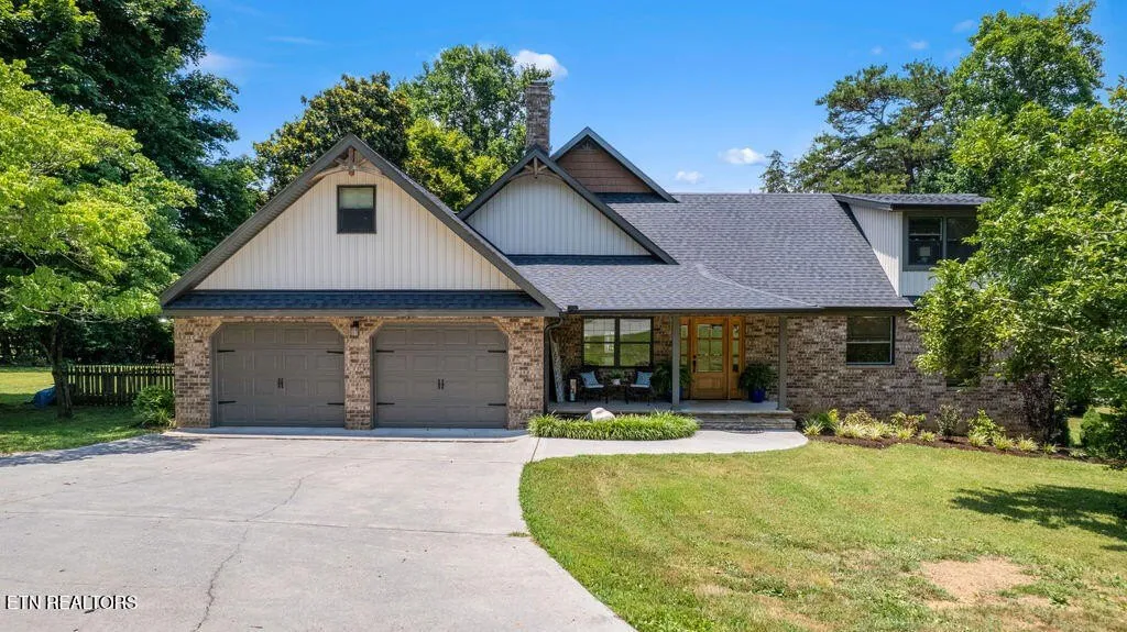 RARE FIND! This lakefront retreat on Lake Loudon has been COMPLETELY RENOVATED with a Craftsman design and is nestled on 2.4 flat acres with no HOA in a private, peaceful cove with 2 docks (one covered with new roof & a lift) & a boat ramp. This home was completely transformed down to the studs in 2022, with every major system replaced, including electrical, plumbing, roof, Trane HVAC, septic, and water softener system. Structural upgrades were made to support a new roofline and thoughtful addition, making this essentially a brand-new home. In 2024, a spacious 22x15 screened porch with a tongue-and-groove ceiling and a large open deck were added to maximize outdoor living. A 20x20 stamped concrete fire pit area, new dock decking, rip rap shoreline, and a new ramp were completed to further enjoy the lake and views. All work was fully permitted, and the craftsmanship throughout reflects both quality and thoughtful design. Inside, the open floor plan creates a seamless flow between the kitchen, living, and dining areas. The dining room centers around a striking stone fireplace, while the chef's kitchen boasts custom cabinetry, granite countertops, a double oven, eat-in bar, and a walk-in pantry-perfect for entertaining or everyday comfort. The main level features bamboo flooring throughout, a spacious primary suite with a walk-in closet and spa-like en suite, a stylish half bath ideal for lake days, and a well-designed laundry room complete with a sink, cabinetry, and drop zone. Upstairs includes a bonus room and a second bedroom with two closets (including a walk-in) and a full en suite bath with tiled tub surround and tile flooring. A huge bonus room allows for kids or in-laws to have their own space. The fully finished walk-out basement offers incredible flexibility with a third bedroom, a full bath, and an additional guest room or office with a wet bar-ideal for guests or a separate living space. Outdoor living continues across the expansive 59x8 covered back porch overlooking the lake, as well as an 18x6 covered front porch and an 18x8 covered side porch. For all your storage needs, the property includes four garages and a floored loft above the garage. The flat yard to the water is a rare and coveted feature for lakefront properties and provides easy access to your private dock and boat ramp. The large driveway allows for boat or RV storage space. This is East Tennessee lake living at its finest-private yet convenient, with boat access to popular destinations like Calhoun's, Cheers at Choto, and Neyland Stadium. Whether you're looking for a peaceful year-round home or a luxurious lake getaway, this stunning property truly has it all. The extra lot is a separate deeded lot. Schedule your showing today!