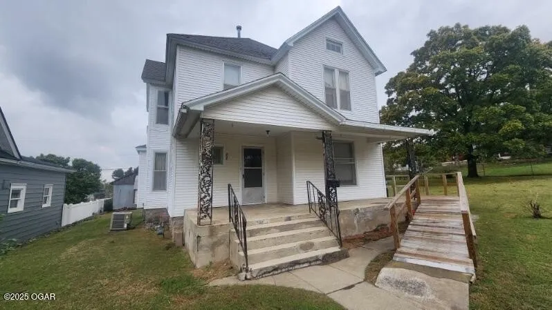 This house has been in the same family for 70 years. The house has 4 bedrooms and 2 living spaces; lots of options for even a 5th non conforming bedroom. Over 2100 sq. feet sitting on a large lot. There is a garage and a couple of buildings that are behind the house. The property is selling as is, where is. The house will go conventional and cash. The house has central air/heat downstairs not upstairs. The house needs some updating on the inside with the flooring and stripping wallpaper and painting... The antique staircase is beautiful and the pocket doors need tlc but are beautiful and the other original doors/knobs.