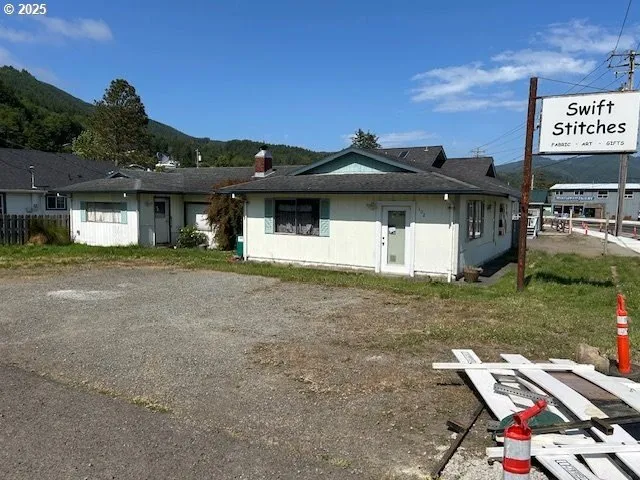 Great chance to buy this (fixer) mixed use home nearly 1700 sq. feet, featuring a two bedroom and one bath apartment w/laundry hook up plus an attached- 768 sq. ft. commercial retail w/a half bath. Property has a long history as a fabric store and real estate office. Sold "as is". Priced below real market value. Great Highway 101 exposure with over 53 feet of frontage. Possible bay view with a second story!