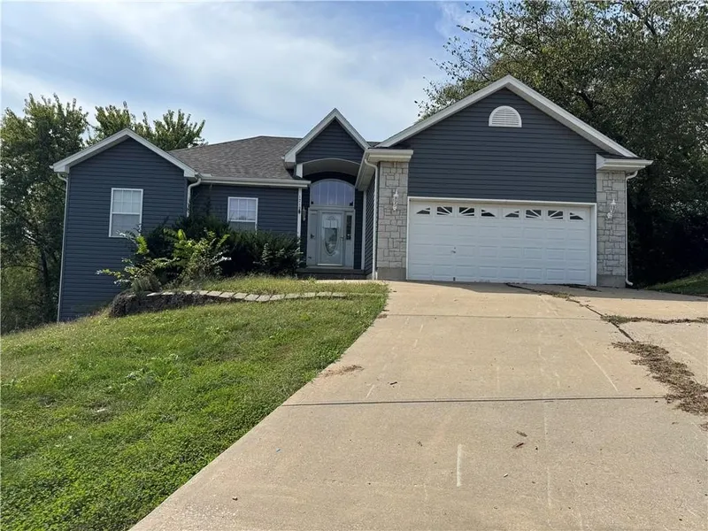Case #291-458182. Don't miss this HUD-owned home and discover this charming home in the desirable Farmington Acres subdivision. This property offers 3 bedrooms and 2 full baths, featuring custom cabinetry throughout. The spacious great room provides the perfect setting for relaxing or entertaining. A full walk-out basement offers additional potential for living space or storage. Nestled on a quiet cul-de-sac, this home combines comfort with convenience in the sought-after Grain Valley School District.