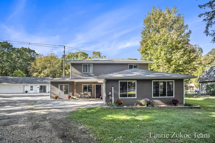 Welcome home to this beautifully rebuilt ('14) home, designed to impress with versatile living spaces & refined finishes throughout. Nestled on a wooded parcel, this residence offers a thoughtful floor plan that blends functionality & comfort across approximately 2,400 finished square feet. The light-filled main level features an open-concept layout anchored by a gourmet kitchen with modern cabinetry & a movable center island, seamlessly connecting to the dining & living areas framed by expansive windows overlooking the lush surroundings. The main floor is completed w/spacious bedroom & ample mudroom/laundry combo & full bath. Upstairs, the spacious primary suite offers a stylish ensuite bath w/standalone soaking tub, oversized tile shower, & luxury walk-in closet. Accompanied by two additional bedrooms, one w/ WIC and 3rd full bath. A standout feature is the detached apartment; ideal for guests, in-laws, or rental income; complete with its own entrance & well-planned layout. The prop erty also includes an attached two-stall garage that's heated and insulated, plus a detached three-stall garage offering plenty of storage and workspace. Surrounded by mature landscaping, wooded privacy, & open green space, this home is a rare blend of modern design, flexibility, and natural beauty.