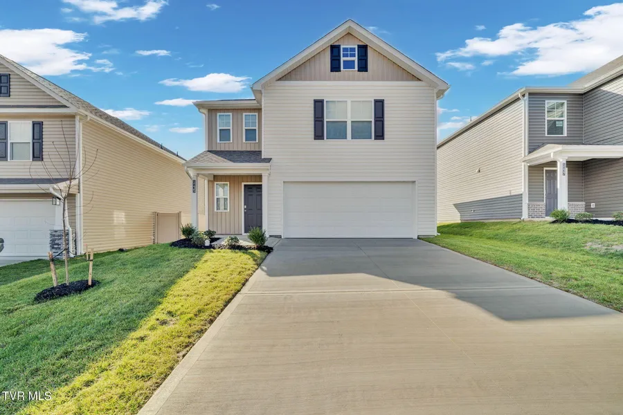 The Darwin floorplan available at Johnson Farms in Greeneville, TN is a charming two-story home. The main level is open concept, featuring a spacious kitchen with a pantry and island with countertop seating. The kitchen overlooks an expansive living area, a well-lit breakfast nook, and an outdoor patio. There is also a powder room off the foyer for convenience. Upstairs features a desirable primary bedroom with a walk-in-closet and private bathroom. Two additional bedrooms are also on the upper level, and these each have their own walk-in-closet. An additional bathroom and laundry room complete the upstairs of this home. Express Series features include 8ft Ceilings on first floor, Shaker style cabinetry, Solid Surface Countertops with 4in backsplash, Stainless Steel appliances by Whirlpool, Moen Chrome plumbing fixtures with Anti-scald shower valves, Mohawk flooring, LED lighting through...