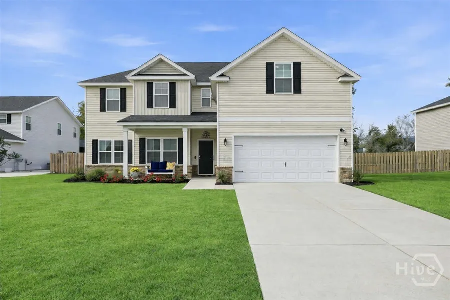 This 4-bedroom, 3-bath home with an additional office and two living rooms is located at 103 Church Hill Drive in South Effingham's highly sought-after Buckingham Plantation and zoned for top-rated school districts. Nearly brand new, the home includes several completed upgrades, allowing for a truly move-in-ready experience. Blinds, ceiling fans, refrigerator, sod, shed, fencing, interior paint, and an automatic garage door opener are already installed for the buyer's enjoyment. The main level features a flexible and functional layout, including a secondary bedroom suite with a private bedroom and a detached oversized full bath, well suited for guests or multi-generational living. A formal office is also located on the first floor and overlooks the covered front porch and established knockout rose landscaping. The open kitchen offers double ovens, ample workspace, large kitchen island, and flows seamlessly into the dining area, creating an ideal setup for everyday living and entertaining. Upstairs, the owner's suite provides a spacious retreat with a large en-suite bath and an expansive dream-worthy walk-in closet. The second floor also includes a bonus or media room that can serve as an additional living space, playroom, or home theater. Two additional guest bedrooms and a full bath are conveniently located nearby. The outdoor space is equally well-appointed, featuring a centipede-sodded backyard, privacy fencing, covered rear porch, fire pit, raised garden bed area, playset, and storage shed. With a thoughtful floor plan, upgraded features already in place, and both indoor and outdoor spaces designed for comfort and functionality, this home offers an exceptional opportunity in Buckingham Plantation.