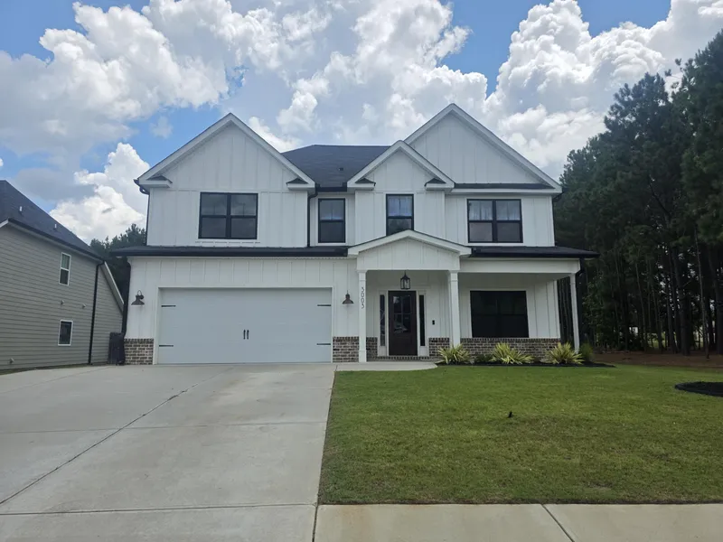 Welcome to this stunning 4-bedroom, 3-bath home with a flex room, offering 2,840 sq. ft. of beautifully designed space. Located in the desirable Greenpoint Subdivision, this property blends elegant finishes with cutting-edge smart technology and so much attention to detail to include rounded wall corners throughout, adding a soft architectural touch to every space. Step into a grand foyer that opens to a formal dining room featuring a coffered ceiling and custom lighting. The open-concept living room showcases coffered ceilings and a remote-controlled electric fireplace, flowing seamlessly into the kitchen and breakfast nook. The chef's kitchen boasts an oversized quartz island with an air disposal button, shiplap-accented breakfast area overlooking the pool, and premium GE Cafe appliances. Features include: - Smart oven with touch screen, convection, dehydrator, air fryer & in-oven camera - 5-in-1 Advantium oven with microwave, precision cooking & warming features - Smart refrigerator with LED wall, autofill dispenser, zone temperature control, and more. Downstairs includes a guest bedroom with access to a full bath. Upstairs, the owner's suite offers vaulted ceilings, a spacious sitting area, a tiled ensuite with double vanities, garden tub, walk-in shower, and large closet. Two additional bedrooms with vaulted ceilings share a full bath with dual sinks. Flex room upstairs is accessed by stylish double barn doors. Remote-controlled roller shades downstairs - Nest thermostats upstairs and down. All smart features - including doorbell, ovens, refrigerator, lighting, thermostats, and pool systems - are Alexa compatible for seamless control. Exterior highlights include: - Saltwater pool with waterfall, Omnilogic app-controlled settings and lighting - Extra-wide parking pad - Unfinished building ideal for pool house or storage. Conveniently located near local schools and just minutes from I-20, this home offers easy access to everything you need - making it perfect for families, professionals, and anyone looking for both comfort and connectivity.
