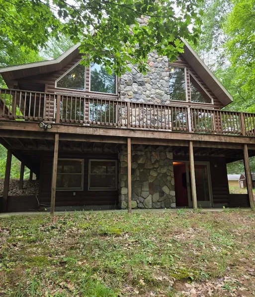 Welcome to your Private retreat in the woods near Cadillac. Arquilla Creek runs through the Property. This beautiful Bungalow offers 3 bedrooms and 2 full Baths. It has almost 3000 sq. ft. of living space, on 3 levels. The home has incredible woodwork, of walls and flooring, throughout. The high cathedral ceilings, in the living room are majestic. There is a large wrap around porch, which enables you to view the gorgeous property and wildlife. The 19.8 acres gives you seclusion and many outdoor opportunities. Property is close to Manistee River and Red Bridge Trail. There is space where a gun range is usable. The massive outbuilding/garage can hold multiple vehicles, be used as a mechanical shop and has a living area in the back. Come check out this immaculate property. Property also includes 3 tree stands & a gun hunting blind.***Seller to allot $5000 for new flooring***
