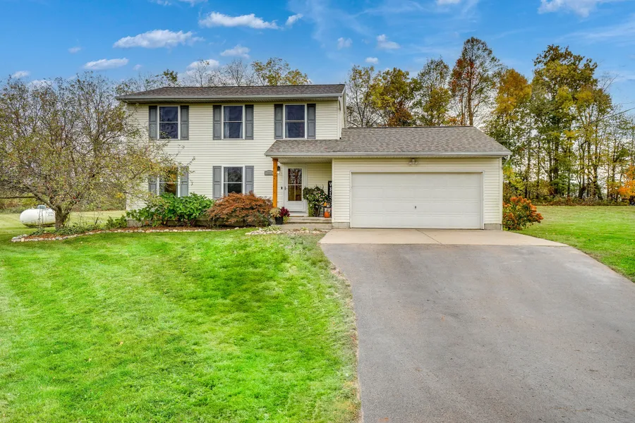 OPEN HOUSE SUNDAY 10/26 CANCELLED! Discover the charm of country living with the convenience of town in this stunning 3-bedroom, 3 bathroom home in Hastings! Set on 2 private acres, this traditional two-story offers the perfect balance of space, comfort and privacy! The large kitchen and dual dining areas make it ideal for gatherings, while the finished basement adds even more room to relax or entertain. Main floor laundry and a half bath are also featured on the main level. The second floor of the home features a large master bedroom with a walk-in closet and private bathroom along with two more bedrooms and a full bathroom. You'll love the thoughtful updates throughout-new roof, heat pump furnace, tankless water heater, AC, deck, pergola, carpet and stylish lighting. Located on a quiet, private street yet just minutes from downtown shops, dining, and schools, this home truly has it all...
