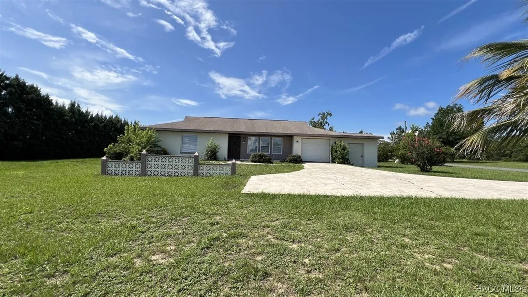Must See, cheapest home for sale in an exclusive area. This CBS 2/2/1 (it can be a 3/2 :) embraced by one acre of land. New ac 2022. This home has an open floor plan, updated with all new paint inside, all new interior doors, all new high 1/2 ft base boards throughout. Windows have single wood hung blinds. Tile covers most all areas accept bedrooms and the guest bath they have new life proof wood flooring. Both Bathrooms have new vanities, mirrors and toilets. Both bedrooms have new high baseboards, new fans/ lighting, new wood blinds. From the kitchen walk through sliders out to your Florida room from. Open, clear, beautiful land. Come and make this move-in ready abode your home that is perfect for almost any family, investor (renting) or vacation place for seasonal residents. The open floor plan welcomes you in with a cozy kitchen, lovely flooring throughout, complete with an enclosed Florida Room. Don't forget the extra space by the garage that can be used as a mancave/workshop or golf cart storage. Located near shopping, golf courses and a quick drive to Inverness, Crystal River or Hernando. Enjoy boating, fishing, scalloping, swimming with manatees, canoeing, cycling, camping and more!