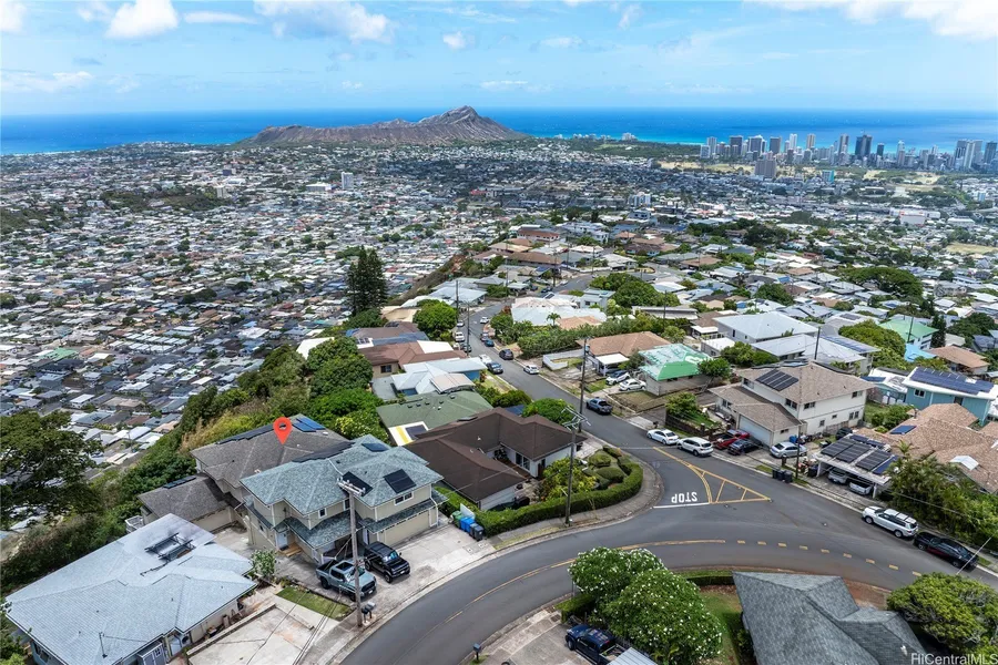Nestled on coveted St. Louis Drive, this expansive 5-bedroom home perfectly blends tranquility with modern comfort and showcases stunning views of lush valley greenery, iconic Diamond Head, and the sparkling ocean beyond. 24 owned photovoltaic panels, solar hot water, and split air conditioning keep the home energy-efficient and cool all year. The flexible layout offers an Ohana unit (bedroom/bath/kitchenette) on the main level with its own private garden, screened-in porch deck, and separate entrance - ideal for guests, extended family, or rental income potential. Upstairs, the primary suite is a true retreat with a separate office/den, spacious closet, and direct access to a large covered lanai for relaxing or entertaining while taking in the panoramic east /south views. A cozy bonus living area off the stairway landing is perfect for a reading nook or home library. The finished baseme...