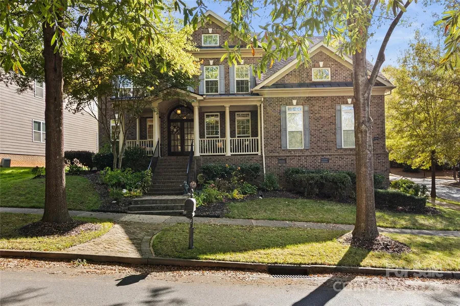 Welcome to this elegant 4-bedroom, 3.5-bath brick home offering 3,596 square feet of beautifully designed living space. Perfectly positioned on a corner lot with a fenced yard, this home blends luxury, comfort, and functionality. Step through the double-door entry into a grand foyer showcasing soaring ceilings and hardwood floors throughout the main living area. The primary suite on the main level offers convenience and privacy, while the dedicated office with French doors provides an ideal workspace. The gourmet kitchen is a chef's dream-featuring a sprawling island, gas range, premium finishes, and open flow to the living and dining areas. A see-through fireplace elegantly connects the two-story great room and sunroom, adding warmth and ambiance. The dining room with trey ceiling is perfect for hosting family or formal gatherings. Upstairs, you'll find 3 spacious secondary bedrooms, a jack-and-jill bathroom, and a huge bonus room with attached full bathroom which makes it ideal for a media space, playroom, or fitness area. Don't miss the massive storage closet too. Enjoy mornings on the cozy front porch overlooking tree-lined streets, or entertain outdoors on the sprawling back deck. You'll love the abundance of parking options, including a 3-car garage and additional driveway. The Vermillion community offers resort-style amenities including an inground pool, clubhouse, playground, dog park, picnic area, community garden, and walking trails. This exceptional home combines timeless craftsmanship with modern comfort-all in one of the area's most desirable neighborhoods.