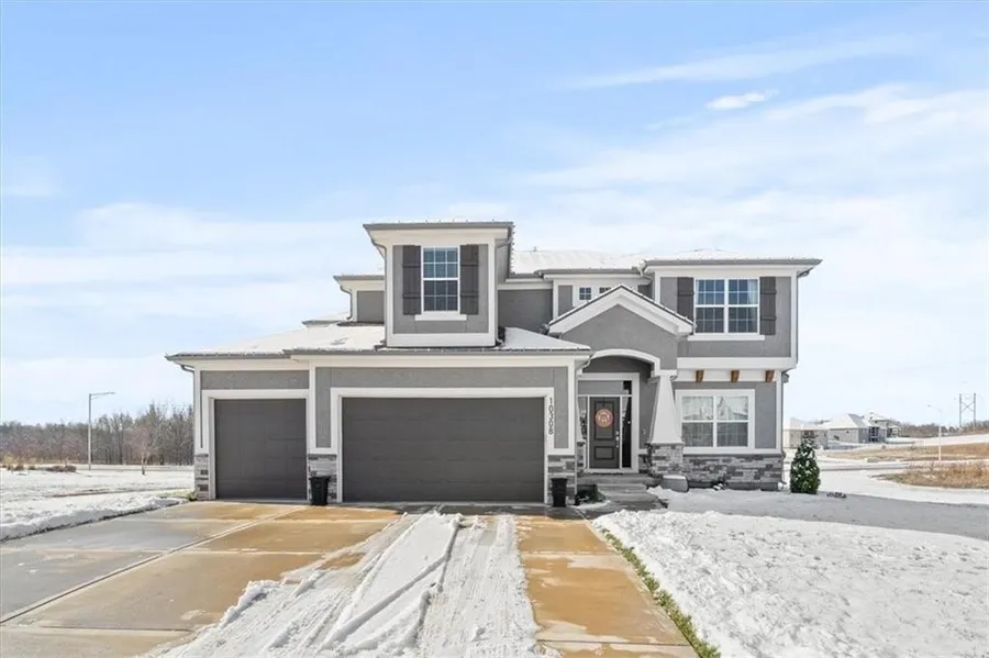Welcome to your dream home in the highly desirable Benson Place Landing! This exquisite 2-year-old home blends the best of comfort, thoughtful design, and unbeatable location. Enjoy the feel of new but with upgrades you won't find in current new construction. Step inside to discover an open yet defined layout, perfect for both everyday living and entertaining. Gorgeous ceiling beams accent the expansive great room, while the flexible front room, complete with wainscoting, offers space for a formal dining area, home office, or playroom. The kitchen is a showstopper, featuring a convenient coffee bar, stone countertops, and generous storage. Upgrades that truly set this home apart: Designer light fixtures throughout: modern, stylish, and energy-efficient. Beautifully landscaped yard for instant curb appeal and outdoor enjoyment. Newly installed iron rod fencing in backyard. An extended concrete patio ideal for gatherings, grilling, or relaxing. 4-car tandem garage, equipped with its own electric heater provides endless options: extra vehicles, storage, workshop, home gym, or creative space. Unwind in the sprawling primary suite with a spa-inspired bath, oversized walk-in closet, and direct access to the laundry room for ultimate convenience. Step outside to the covered 14x12 deck. Enjoy unbeatable community amenities: (2) swimming pools, splash park, playground with soccer goals, miles of scenic trails, and lush nature areas, all just steps from your door. Commuters will love the quick access to I-435, I-35, and 152 Hwy, only 20 minutes to KCI or downtown Kansas City! Don't miss your chance to own this like-new, move-in ready home with premium upgrades and a prime Northland location.