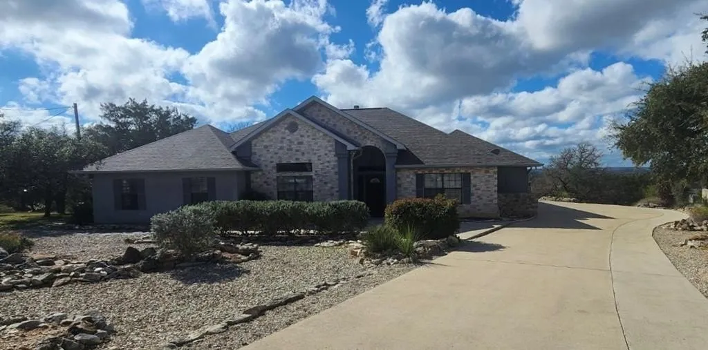 Discover your dream home in the picturesque Texas Hill Country! This charming one-story home boasts 3 bedrooms, 3.5 bathrooms and is thoughtfully designed for both comfort and style. Perched high atop Wood Hill Estates enjoy breathtaking sunsets and expansive views from the largest lot in the subdivision-a sprawling 1.54 acres. The formal dining room impresses with 12-foot tray ceilings, while the expansive kitchen, complete with island, double ovens, abundant storage, and a cozy bay-window dining area, is perfect for family gatherings and entertaining. The living room features a stunning half-vaulted ceiling, limestone fireplace, with built-in entertainment center and bookcases. The primary bedroom is a relaxing retreat, featuring a reading nook framed by bay windows, an en suite bathroom with spacious walk-in shower and a generously-sized walk-in closet. A mud room with a full bathroom...