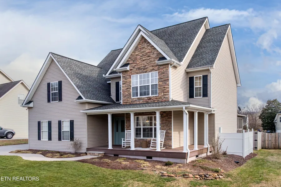 For the first time, this one owner, incredibly maintained 2,300 sqft home, in the highly sought-after community of Sterchi Hills, is now available on the market. This beautiful 3-bedroom, 2.5 bath home features a completely updated and remodeled main level highlighted by an open floor plan, oversized kitchen, with granite countertops, island with bar top seating, built in bookcases that accentuate the gas log fireplace. Upstairs features a large primary suite includes tray ceilings, walk-in closets, 2 spare bedrooms, a laundry room and a spacious bonus room that can be a game room or a 4th bedroom. Just off the kitchen, step outside to the screened in covered back deck that overlooks the large flat backyard, a fire pit area large enough to cook marshmallows for the whole neighborhood, a rock faced Koi Pond and a new large shed that conveys. The grass and landscaping is immaculately maintained and for dog lovers or just added privacy, the backyard has a wooden privacy fence-perfect for entertaining or relaxing. Additional highlights include: oversized two-car garage, new laminate flooring and light fixtures throughout most rooms, freshly painted interior and a roof that's about 10 years old. The neighborhood features a community pool and walking trails around the property! Come see this beauty for yourself! Check out the Sterchi Hill's community Instagram @ sterchihillsneighborhood to see some fun events and the neighborhood vibe!
