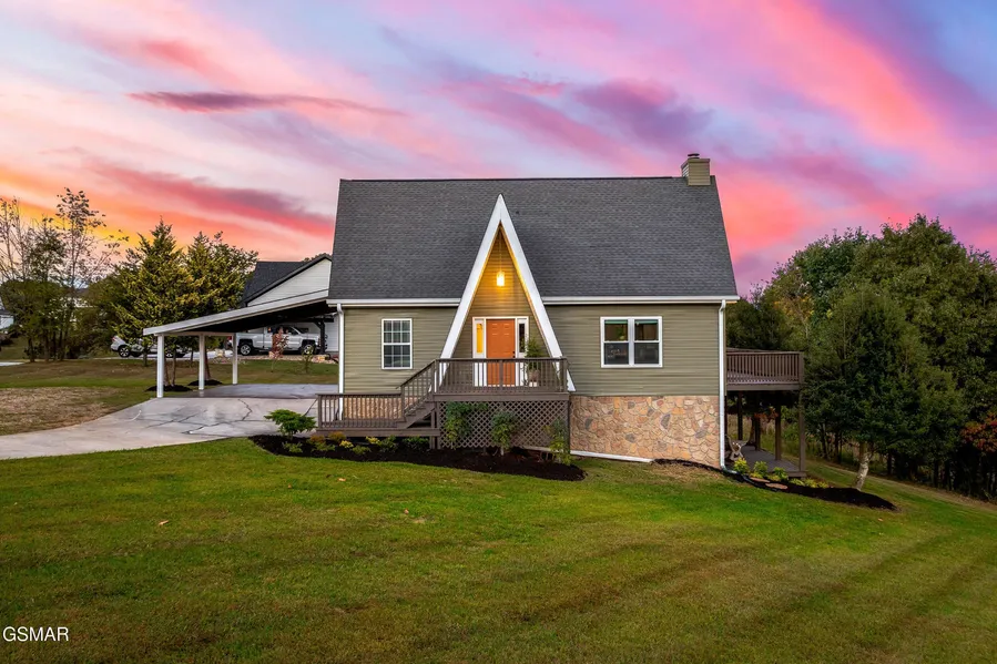 Gorgeous A-Frame with Mountain Views in Kodak! Nestled on 1.34 acres in beautiful Sevier County, this completely renovated A-frame home perfectly combines modern style with cozy mountain charm. Expansive windows frame stunning mountain views and fill the living area with natural light, highlighting the gorgeous stone fireplace as the centerpiece of the room. The updated kitchen features stylish gray cabinetry, marble-look countertops, a modern backsplash, stainless steel appliances, and chic open shelving. Step out onto the large upper deck to take in the sweeping mountain vistas, or enjoy the covered lower deck with walkout access from the spacious basement-ideal for entertaining or relaxing. The basement offers plenty of room for a second living area, recreation space, or even an additional bedroom. With spacious bedrooms and thoughtful updates throughout, this home is move-in ready and full of charm. Experience peaceful mountain living just minutes from all that Sevier County has to offer!