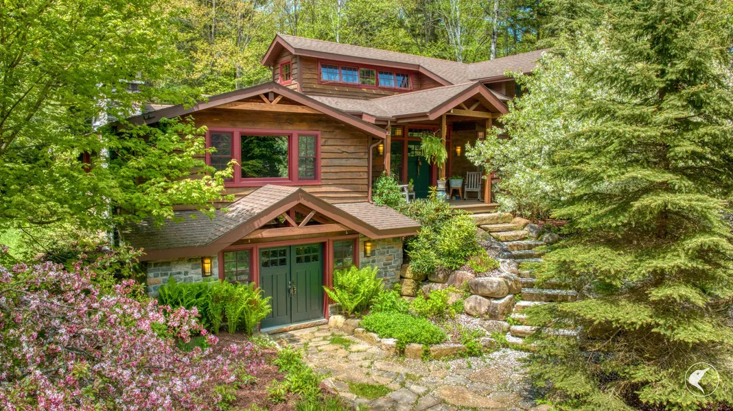 Privacy and a wooded setting on 6+ acres make this Adirondack style home a Lake Placid gem. This property consists of a main house with 4 bedrooms, 4.5 bathrooms, a 1 bedroom guest cottage, a 2 stall garage and 2 large woodsheds. The cottage and the house each have their own septic system and well. The lower entrance provides a large mudroom with cubbies and in-floor radiant heat or take the stone steps that lead to a covered post and beam entrance. Either way, perennials abound! Inside you'll find the classic Adirondack vibe. Rough sewn pine chair-rail and wall coverings, post and beam accents throughout, in-floor heat everywhere with wood flooring, stamped concrete and custom tile. The chef's kitchen consists of stainless steel appliances, a Thermador 6 burner gas range, commercial grade hood, an island with a double basin porcelain farm sink and butcher block. There are 3 bedrooms, 2....