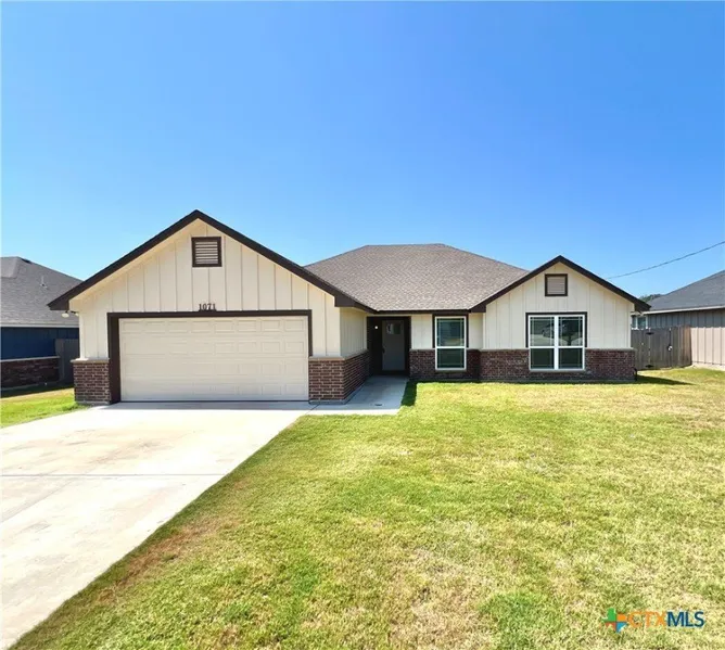 Built just three years ago in Lampasas's desirable Stone Valley subdivision, this home blends modern finishes with a well-established feel. Inside, you'll find stained concrete flooring, a tiled master bath shower, a walk-in master closet, a fiberglass tub/shower with tile surround in the second bath, granite countertops, tile backsplashes, stainless steel appliances, and washer/dryer hook-ups. The exterior features brick and Hardi Plank siding with a composition roof and a 2-car garage. The yard is fully sodded with a sprinkler system and enclosed by a wood privacy fence-ready for both relaxation and entertaining.