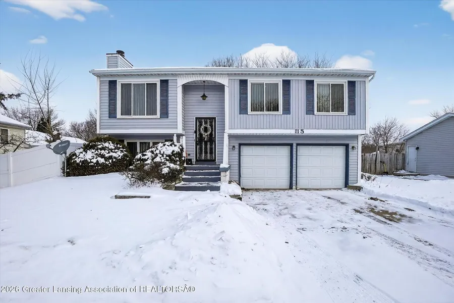 Welcome to 115 E Claremore Drive! This beautiful and meticulously loved 3 bedroom, 1.5 bathroom, bi-level home and is located in the quaint neighborhood of Lancen Village in South Lansing. Within a short drive to all your daily needs including restaurants, grocery stores, expressways, MSU campus, biking trails, Hope Sports Complex, Hawk Island Park and more. As you enter through the front door, you are greeted by a tall entryway with a staircase to either the first floor or to the finished lower level. Heading upstairs is the living room with a large window that overlooks the finely manicured front lawn and landscaping, a gas burning fireplace, and vaulted ceilings. Adjacent to the living room is the dining room and kitchen. The dining room has a glass sliding door that gives access to the balcony style deck. Where you can enjoy dinner inside or outside during the tranquil summer evenings. The kitchen has lots of cabinets and counterspace available and appliances that stay with the home! Rounding out the remainder of the first floor includes the primary bedroom, two additional bedrooms, a full bathroom, and plenty of closet space. In the finished lower level, there is a large rec room, with a half bathroom, the storage/utility room, and the entrance to the finished and attached 2.5 car garage. The extra-deep garage provides space for more storage and gives access to the privately fenced backyard and back deck. A perfect backyard oasis to entertain guests! There are so many updates throughout! Don't miss this home! Call today to schedule your private showing! Please review the agent remarks.