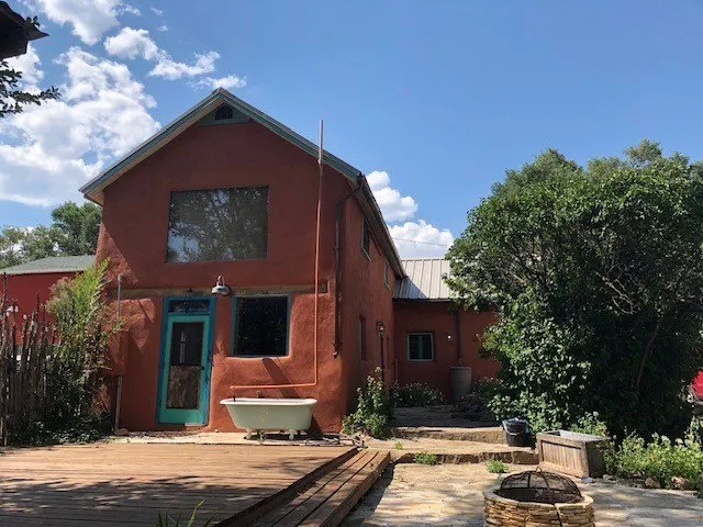 This one-of-a-kind adobe house has a fascinating history. It was built as a "bounty house" after the Civil War: soldiers could have a piece of land for free if they built a certain minimum size house on it. The bounty house is the living room of this house - a large room with wood floor and high ceiling made of vigas and latillas. With a red enamel gas stove at the far end, a built-in bookcase near the front door, and Mexican light fixtures, it is a charming entry to the house. The rest of the house was built onto this structure later and includes a bathroom with walk-in tub, a laundry area, and a large homey kitchen downstairs. The kitchen has a large 5-burner gas stove and large matching refrigerator and freezer. A spiral staircase leads upstairs to the bedroom, which has bathroom facilities in it (sink, toilet, and claw-foot tub), and a walk-in closet. The lot is 0.29 acres, green and...
