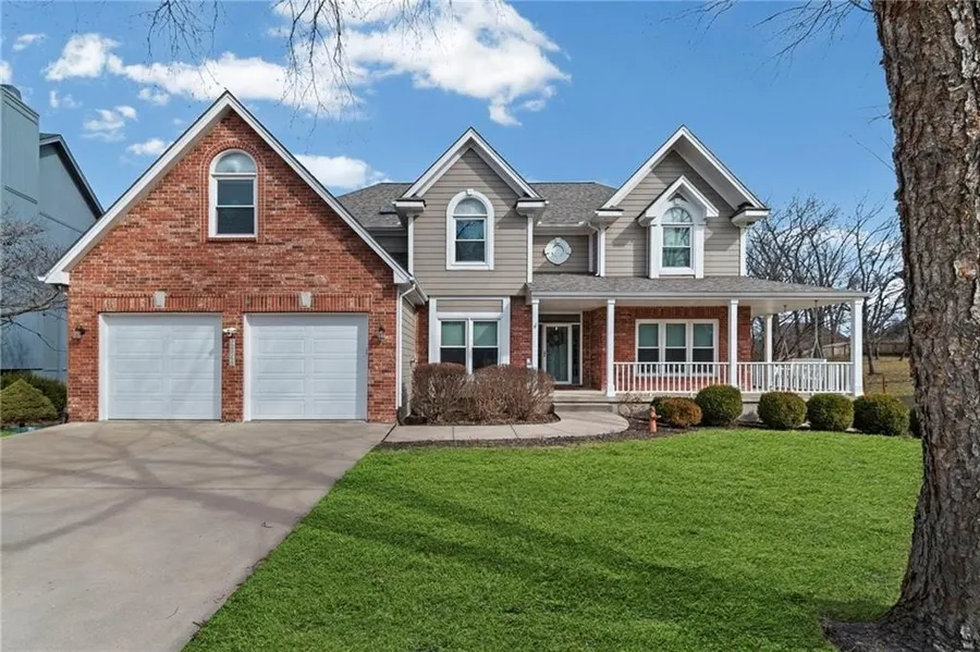 Morning light filters through the trees as you step onto the gorgeous wrap-around covered porch, an inviting place for coffee, conversation, and quiet moments surrounded by nature. Inside, warm hardwood floors lead you into a beautifully appointed kitchen featuring a tiled backsplash, breakfast bar, and seamless connection to the bayed breakfast area where peaceful, tree-filled views become part of your everyday routine. The family room offers a cozy yet spacious setting with a charming fireplace and bay window, creating the perfect backdrop for both relaxed evenings and lively gatherings. Just beyond, step outside to the expansive deck and patio, where serene wooded views provide privacy and a true sense of retreat. Upstairs, the primary suite is truly exceptional in size and comfort, offering a peaceful sanctuary with a generously sized bedroom and an impressive ensuite bath featuring heated tile floors and designed for relaxation. With five bedrooms and four and a half baths, there is room for everyone to spread out comfortably. The bonus room offers endless flexibility, ideal for a home office, creative studio, or playroom. The finished recreational level expands your living and entertaining options even further, complete with its own kitchenette and dedicated entertainment space, perfect for movie nights, hosting guests, or multi-generational living. With incredible space, thoughtful features, and a beautiful natural backdrop, this home blends comfort, function, and lifestyle, all located within the highly sought-after Lee's Summit school district.