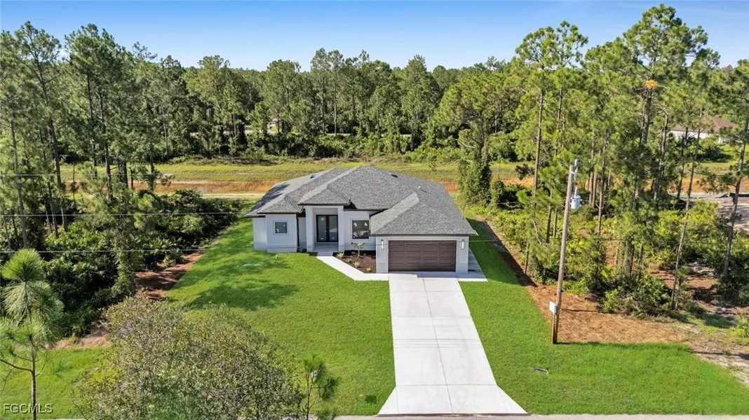 Super sale, This seller is offering $20,000 towards Buyers closing cost, This newly built home features impact windows and doors, providing added security, energy efficiency, and peace of mind. Offering 3 bedrooms, a versatile den, and 2 full bathrooms, it's set on a quiet street in the Lehigh Acres neighborhood. The open layout boasts high ceilings, sleek tile flooring throughout, and a modern kitchen with white cabinetry and a pantry, designed for both comfort and everyday living. The primary suite includes a spacious bathroom with a double vanity, walk-in shower, and a freestanding soaking tub for a spa-like retreat. It also offers two walk-in closets, both built out with shelving for convenient organization and storage. All bedroom closets include built-in shelving. The den provides flexible space that can serve as a home office, guest room, or creative area. Out back, the open patio overlooks a small canal with neighboring homes across the water, offering a sense of openness while still feeling connected to the community. This move-in-ready home blends modern design with low-maintenance living, an ideal option for buyers seeking simplicity and style in a growing area. Seller is open to reasonable offers!
