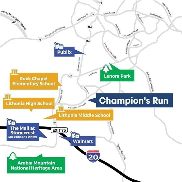 **Community Amenities: Pool, Tot Lot, Clubhouse** **Prime Location: THE KERI- Minutes to I-20 and Hwy 124** **Seller Paid Closing Costs with Preferred Lender** With Preferred Lender, Great incentives are available for a limited time. Discover urban convenience in a serene suburban setting at Champions Run in Lithonia. Situated just minutes from I-20 and the Mall of Stonecrest, this community offers easy access to shopping, dining, and outdoor activities. The renowned Arabia Mountain National Heritage Area and various local parks are only a short drive away. This vibrant community boasts a pool, clubhouse, and tot lot for residents to enjoy. Experience open-concept living with the KERRY design, featuring a chef-inspired kitchen that seamlessly flows into the family room and casual dining area, perfect for gatherings with friends and family. The private bedroom suite offers a spa-like bath, while spacious secondary bedrooms are filled with natural light and ample storage. Stay connected with Home Is Connected, an industry-leading suite of smart home products designed to keep you in touch with the people and places you value most. Photos are for illustrative purposes only and may not depict the actual home. KERRY
