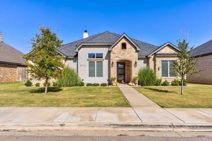 This amazingly beautiful and pristinely kept home looks brand new and offers an ideal blend of style, comfort, and functionality. Featuring 4 bedrooms, 3 bathrooms, and a 2-car garage, this stunning property boasts incredible curb appeal with a stone and brick exterior, lush landscaping, and elegant uplighting that creates a warm, inviting ambiance. Step inside to an open-concept floor plan showcasing luxury vinyl plank flooring, quartz countertops, plantation shutters, and designer lighting throughout. The spacious living area is light and bright, featuring a high, beamed cathedral ceiling and a German schmear fireplace with gas logs, framed by floating stained wood shelves-perfect for cozy gatherings or entertaining guests. The chef's kitchen is truly a showstopper, complete with a stained island, gas cooktop, double ovens, subway tile backsplash, under-cabinet lighting, and ample storage. The walk-in pantry includes a microwave and wine refrigerator, making it both practical and luxurious. The front bedroom offers a charming built-in bench and cubby, cathedral beamed ceiling, and its own en suite bathroom with a stylish subway-tiled shower. Bedrooms three and four share a well-appointed bathroom with a tub/shower combo. The isolated primary suite is a private retreat with cathedral beamed ceilings, a stained barn door, and a spa-like bathroom featuring a stained shiplap accent wall, soaking tub, separate shower, double vanity, and a large walk-in closet with built-ins. Additional highlights include a laundry room with a sink, ample cabinetry, drying rack, and another stained barn door, plus a mudbench conveniently located nearby. Enjoy outdoor living in the spacious backyard, complete with a tall privacy fence, concrete curbing, and a covered patio with a TV connection-ideal for relaxing or entertaining. This home has been meticulously maintained inside and out-a true showpiece that defines move-in ready! Call me TODAY for a personal tour.