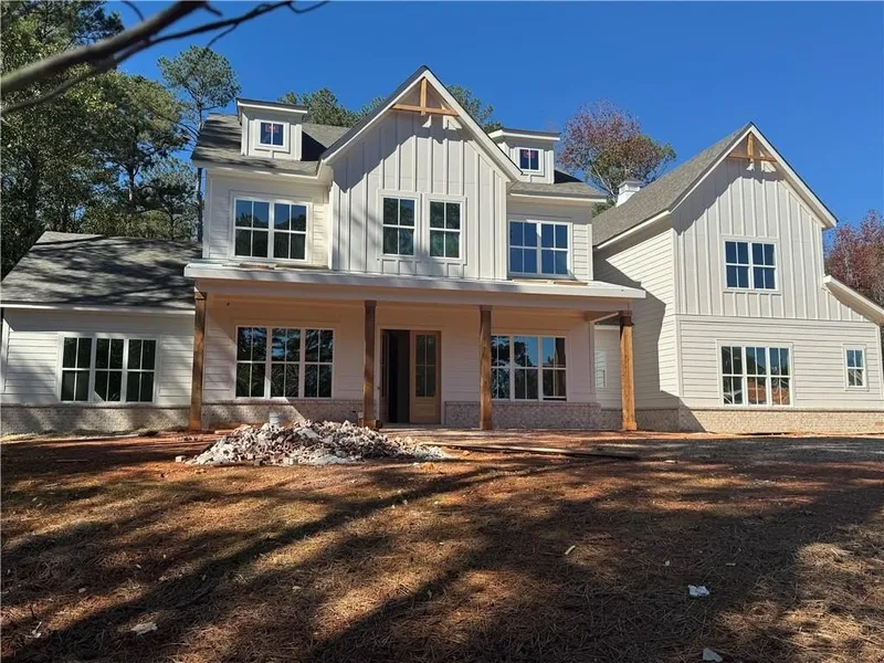 This home has it all... Location... Location... Location... best schools in the area... NO HOA!!.. nestled in the heart of serene West Cobb, conveniently located near the Avenues of West Cobb, great access to all that the area has to offer... lots of land and room to play... this stunning new construction farmhouse exudes rustic yet modern charm... it starts with the large covered porch welcoming you in... the thoughtfully designed living spaces, custom designs that live exceptionally well all with lots of flexibility... a great blend of functionality with heirloom worthy elegance... perfect for the bustling rhythms of a large family or a multi generational household where every generation finds their space... Master on main with secondary bedroom / private bath on main too or could be used as an office on the main level... the heart of the home is wide open as you walk through the large...