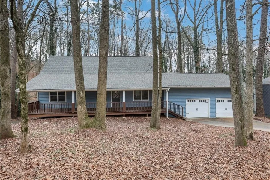 Freshly Updated Home in Sought-After Canterbury North! Move-in ready 5-bedroom, 4-bath home with a fully finished basement, nestled on a picturesque wooded lot offering privacy and peaceful views. The open-concept main level features a spacious great room seamlessly connected to the kitchen, complete with granite countertops, refaced cabinetry, and a separate dining area with direct access to a private wooden deck-perfect for entertaining, grilling, or relaxing while enjoying the serene surroundings. The main level includes a generous primary suite, a secondary bedroom, a full guest bath, laundry room, and pantry. Upstairs, you'll find two large bedrooms with walk-in closets and a full bathroom. The finished daylight basement offers both interior and exterior access and includes a large family room, fifth bedroom, full bath with jetted tub, an additional laundry area, and a versatile bonus room ideal for a workshop, home gym, or hobby space. Enjoy morning coffee or evening relaxation on the welcoming oversized front porch overlooking the neighborhood. Conveniently located just 15 minutes from The Battery, outlet malls, downtown Woodstock, and more-this home perfectly blends comfort, space, and location.