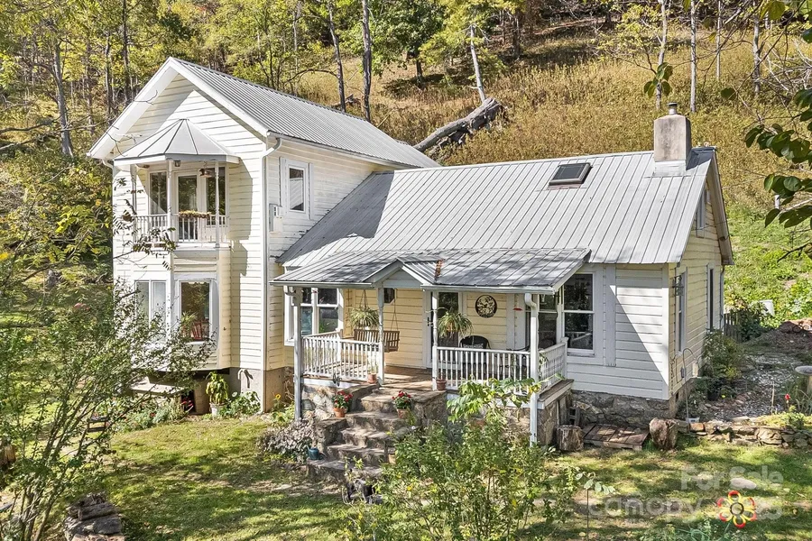 Discover this idyllic 2-bedroom, 2-bath farmhouse nestled on 21 South facing acres in the heart of the Blue Ridge Mountains, just 20 minutes from the vibrant town of Marshall. This mini-farm offers a peaceful retreat at the end of the road for ultimate privacy. Mountain views from the porch, featuring a barn, chicken coop, and a serene spring-fed koi pond. Enjoy established perennial gardens and lush landscaping throughout the property. The spacious owner's suite is a true escape, complete with a cozy sitting room, dedicated office space, and a Romeo & Juliet balcony perfect for soaking up morning sunrises. Outside, relax with your coffee by the koi pond or explore your private trails and green spaces. Experience the best of country living with easy access to local rivers, outdoor recreation, and the charm of downtown Marshall.