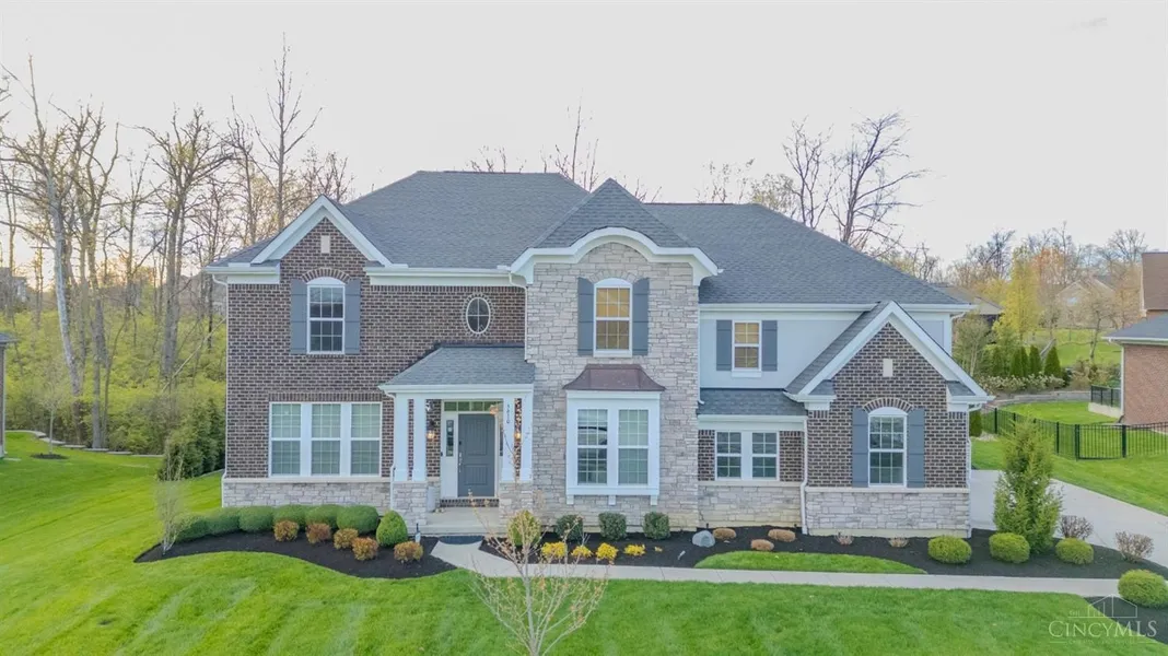 Welcome to 5630 Sentinel Oak Dr, a luxurious 2021 Fischer Homes build in Mason's sought-after Crooked Tree Preserve. This French Manor-style Paxton floor plan offers a gourmet kitchen with granite counters, stainless appliances, upgraded maple cabinetry, and walk-in pantry. The bright morning room opens to a spacious deck and a wooded backyard with a Gazebo and firepit. Enjoy a soaring two-story family room with gas fireplace, plus a private study and guest suite with full bath on the main level. Upstairs features a primary suite with dual walk-in closets and spa-like bath, secondary suite with private bath, two additional bedrooms, a hall full-bath, loft, and laundry. Finished basement also includes full bath. RO and Thunder protection included. Oversized 3-car garage. Solar panels on the roof are 100% paid offnew homeowner enjoys free, clean electricity! Community includes trails, pool...