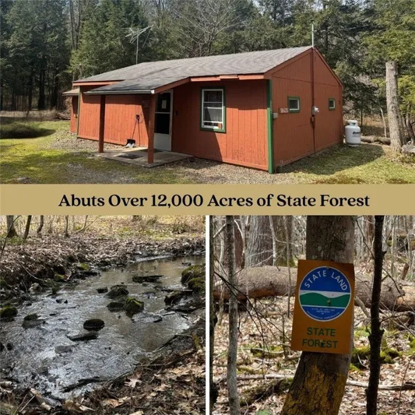 Turn-key 768 square foot cabin, on 2.5 acres and bordering over 12,000 acres of New York State land, this is the kind of place that invites you to unplug and settle into the quiet. Built in 2005 with full-frame construction on a slab foundation, it was designed and built for comfort and durability. Cabin has a working well and septic system in place. A small stream runs through the property, adding to the peaceful setting. From the back door, step directly into McDonough State Forest, where you'll find access to the Finger Lakes Trail and the NYS snowmobile corridor. Whether you're into hiking, hunting, skiing, or just want a simple spot to get away, this cabin puts you exactly where you need to be.